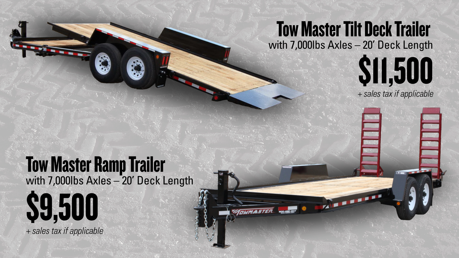 Ohio Cat’s Tow and Go Special delivers serious value on two rugged Tow Master trailers—ready to handle tough jobs and built to last. Whether you’re hauling equipment, materials, or anything in between, these trailers are up for the task—and these prices won’t stick around.