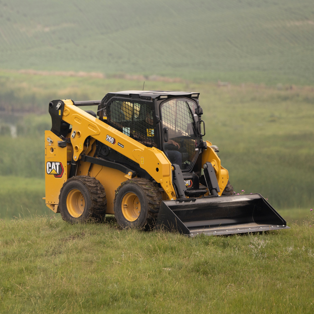 Cat 260 Lease Terms: 36 month agreement for $1,099 per month (plus taxes and fees). Includes a Cat 260 equipped with two speed, Hydraulic Quick Coupler, 80-inch General Purpose Bucket, Performance CVA providing next-day parts and two-day repair, Premier Warranty providing coverage for 36 months or 2,000 hours, and Travel Time and Mileage for Service. Warranty exclusions apply. Customer must take delivery of their machine by April 30, 2026. Lease offer valid April 1, 2026 – April 30, 2026.
